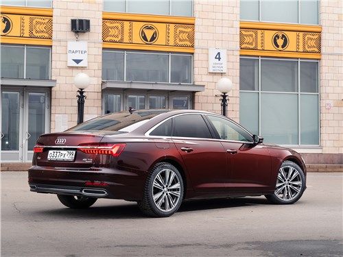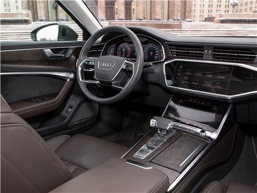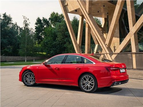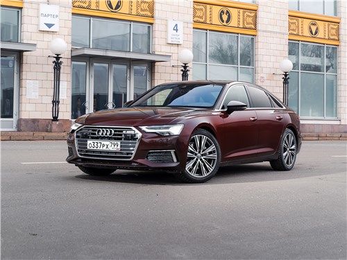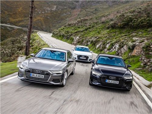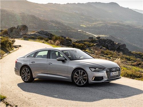 Das internationale Debüt des brandneuen Audi A6 fand auf dem Genfer Autosalon im Frühjahr 2018 statt. Das Modell wird im Juni in den Ausstellungsräumen europäischer Händler erscheinen, und auf dem Inlandsmarkt sollte es erst Ende des Jahres erwartet werden. Tatsächlich handelt es sich bei der Neuheit um eine vollwertige fünfte Generation und nicht um eine weitere geplante Neugestaltung. Sie erhielt den hauseigenen Index C6, modernisierte technische Füllung, Innenausstattung von A7 und aggressiveres Design. Neu gestaltet, die Kotflügel leicht überlappend, fallen Scheinwerfer mit einem kleinen Ausschnitt und stilvolle Teile von LED-Lauflichtern auf. Der Kühlergrill hat seine Corporate Identity bewahrt, sich aber dank des neuen Designs leicht erfrischt. Es hat eine sechseckige Form und ist mit vielen dünnen horizontal ausgerichteten Rippen bedeckt. Die vordere Stoßstange hat vergrößerte Lufteinlässe und einen kleinen Verteiler unten. Das Heck verfügt über große Bremslichter, die durch eine dünne Chromverkleidung, eine umgedrehte Kofferraumlippe und massive längliche Auspuffrohre verbunden sind. Der Audi A6 ist eine viertürige Premium-Mittelklasse-Limousine. Seine Gesamtabmessungen sind: Länge 4939 mm, Breite 1886 mm, Höhe 1457 mm und der Radstand beträgt 2924 mm. Wie der A7 ist das Auto auf der MLB EVO-Plattform gebaut, was bedeutet, dass es eine völlig unabhängige Federungsarchitektur hat. Vorne befinden sich zwei Querlenker und hinten ein Mehrfachglied. Je nach Ausführung kann das Fahrwerk mit herkömmlichen Teleskop-Schraubenfederdämpfern, steiferen Sportstreben, adaptiven Dämpfern oder sogar einem pneumatischen System ausgestattet werden, das während der Fahrt viele Parameter ändern kann. Wenn wir von Geräumigkeit sprechen, unterscheidet sich die neue Generation nicht von ihrer Vorgängerin. In der Standardposition kann die Limousine bis zu 530 Liter Nutzfläche aufnehmen. Mit diesem Volumen können Sie auf Geschäftsreisen außerhalb der Stadt problemlos großes Gepäck unterbringen. Auf dem heimischen Markt wird das Auto mit vier verschiedenen Aggregaten, Roboter- und Automatikgetrieben sowie einem Front- oder proprietären Allradantrieb quattro ultra plug-in mit zwei viskosen Kupplungen angeboten. Ein solider Satz alternativer Motoren und ein ziemlich vielseitiges Getriebe ermöglichen es dem Modell, die meisten Anforderungen eines potenziellen Publikums zu erfüllen. Die Grundkonfiguration des Audi A6 wird mit einem Reihen-Zweiliter-Diesel-Vierzylinder ausgestattet. Es entwickelt 204 PS und 400 Nm Drehmoment. Der Motor passt ausschließlich zu einem Siebengang-Roboter und Frontantrieb. Ein solches Auto erreicht die ersten hundert in 8,1 Sekunden, beschleunigt auf maximal 246 km / h und verbraucht in einem kombinierten Zyklus etwa 4,7 Liter Dieselkraftstoff pro 100 Kilometer. Gegen eine zusätzliche Gebühr kann der Hersteller einen V-förmigen Sechs-Liter-Turbodiesel anbieten. Je nach Ausführung werden 231-286 Pferde und 500-620 Nm Schub produziert. Als Getriebe ausschließlich eine Achtgang-Automatik und Allradantrieb. Dank dieser Einstellung dauert die Beschleunigung auf 100 km / h 5,5 bis 6,3 Sekunden, und die Höchstgeschwindigkeit wird elektronisch auf 250 km / h begrenzt. Der Appetit des Motors ist recht demokratisch - nur 5,8 Liter im gleichen Fahrmodus. Für Heizungen wird die Limousine von einem Drei-Liter-V6 mit Turbolader angetrieben. Eine solche Einheit erzeugt 340 PS und 500 Nm Drehmoment. Mit einer solchen Herde unter der Haube schießt das Modell in nur 5,1 Sekunden auf 100 km / h, verfügt über einen elektronischen Begrenzer bei 250 km / h und verbraucht im kombinierten Zyklus 7,1 Liter Benzin. Der neue Audi A6 legt die Messlatte hoch. Sie hat ein einprägsames und aggressiveres Design, das den Charakter und den Status ihres Besitzers in der Gesellschaft perfekt betont. Ein solches Auto löst sich nicht im grauen Alltagsstrom auf und geht vor dem Hintergrund der Konkurrenz nicht verloren. Der Innenraum ist ein Reich luxuriöser Veredelungsmaterialien, durchdachter Ergonomie und kompromisslosen Komforts. Selbst starker Verkehr oder eine lange Straße können dem Eigentümer nicht die geringste Unannehmlichkeit bieten. Dem Hersteller ist klar, dass Autos dieser Klasse vor allem Fahrspaß bereiten sollen. Deshalb befindet sich unter der Motorhaube der Limousine ein leistungsstarker und technologisch fortschrittlicher Motor, der eine Legierung aus modernen Entwicklungen und legendärer deutscher Qualität darstellt.