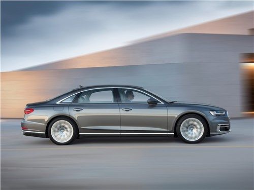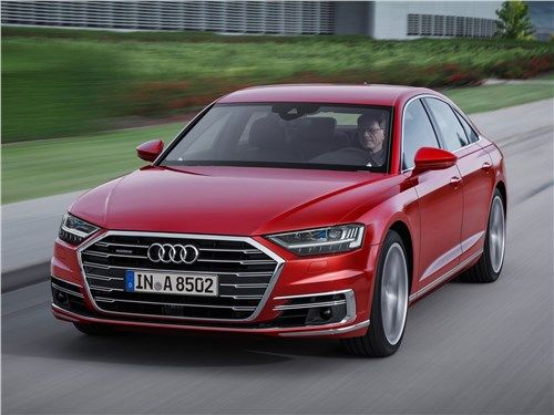Der Audi A8 debütierte am 11. Juli 2017 bei einer Sonderpräsentation in Barcelona. Dies ist die vierte Generation der Flaggschiff-Limousine des legendären Herstellers. Es wird nicht schwierig sein, das neue Produkt von seinem Vorgänger zu unterscheiden. Es verfügt über stilvolle, langgestreckte LED-Vollscheinwerfer mit eleganten Tagfahrlichtabschnitten. Der Kühlergrill behielt seine sechseckige Form bei, erhielt jedoch schärfere Ecken und erhabene horizontal ausgerichtete Rippen. Im Allgemeinen hat sich die Limousine merklich verändert und sieht viel beeindruckender aus. Diese Innovationen haben dem Image jedoch nicht geschadet, das Auto ist immer noch perfekt erkennbar. Audi A8 ist eine fünfsitzige Limousine der Executive-Klasse. Die Gesamtabmessungen sind: Länge 5172 mm, Breite 1945 mm, Höhe 1473 mm, Radstand 2998 mm, und die Bodenfreiheit hängt von der Betriebsart der Luftfederung ab. Es kann die Bodenfreiheit um 80 Millimeter erhöhen und außerdem das Abrollen in Kurven verhindern, indem jedes einzelne Rad je nach Straßensituation angehoben wird. Der Gepäckraum des Audi A8 hat eine typische Kapazität für diese Fahrzeugklasse. Dank der dreibändigen Karosserie verbleiben hinten bis zu 505 Liter Freiraum. Dank dieser Größe eignet sich das Auto perfekt für alltägliche Aufgaben eines Stadtbewohners und für eine Geschäftsreise in eine andere Stadt mit mehreren Koffern an Bord. Der Audi A8 im Inland wird zunächst nur mit zwei Aggregaten, einem Achtgang-Automatikgetriebe mit variablen Getrieben und einem Allradantrieb exklusiv vorgestellt. Trotz der geringen Auswahl sind alle Knoten sehr vielseitig und in der Lage, die meisten Anforderungen eines potenziellen Käufers zu erfüllen. Der Basismotor des Audi A8 ist ein turbogeladener V-förmiger Benziner Sechs mit einem Volumen von 2995 ccm. Dank des großen Hubraums gelang es den Ingenieuren, 340 PS und 500 Nm Drehmoment herauszuholen. Aufgrund einer solchen Herde musste die Höchstgeschwindigkeit des Autos künstlich auf rund 249 Stundenkilometer begrenzt werden. Für Fans von Motoren mit schwerem Kraftstoff kann die Limousine einen V-förmigen Sechszylinder mit Turbolader und einem Volumen von 2995 Kubikzentimetern anbieten. Dieselaggregate waren schon immer für ihren Basischarakter und ihre hervorragende Traktion bekannt. Dieser V6 leistet 286 PS und 600 Nm Drehmoment. Der Hochgeschwindigkeitsfluss eines solchen Autos ist ebenfalls auf rund 249 Stundenkilometer begrenzt. Der Audi A8 hält mit der Zeit Schritt. Sie hat ein schnelles, elegantes und strenges Design, das den Charakter und den Status ihres Besitzers perfekt unterstreicht. Ein solches Auto löst sich nicht im grauen Strom auf und geht nicht auf dem großen Parkplatz des Geschäftszentrums verloren. Der Salon ist ein Königreich aus hochwertigen Veredelungsmaterialien, geprüfter Ergonomie und kompromisslosem Komfort. Selbst eine lange Reise kann nicht die geringste Unannehmlichkeit verursachen. Dem Hersteller ist klar, dass das Auto vor allem Fahrspaß bereiten soll. Deshalb befindet sich unter der Motorhaube der Limousine ein modernes und leistungsstarkes Triebwerk, das innovative Technologien und legendäre deutsche Qualität vereint. Der Audi A8 wird viele Kilometer fahren und unvergessliche Emotionen von der Reise geben.