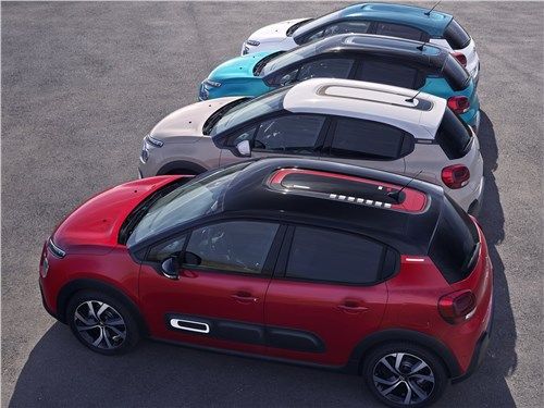 Der Citroen C3 der dritten Generation wurde 2016 veröffentlicht und gewann beneidenswerte Popularität. Bis heute wurden mehr als 750 Fahrzeuge dieser Generation verkauft, was es zum beliebtesten Angebot in der Modellreihe des Herstellers macht. Trotzdem sind seit dem Debüt 4 Jahre vergangen und um die Popularität nicht zu verlieren, hat der Hersteller beschlossen, das erste geplante Restyling durchzuführen. Es stellte sich als ziemlich weich heraus, Vermarkter wollten den Umsatz nicht abschrecken. Der einfachste Weg, ein solches Auto von seinem Vorgänger zu unterscheiden, ist von vorne. Die Designer erweiterten den oberen Kühlergrill auf die Scheinwerfer. Die Scheinwerfer selbst sind völlig neu. Sie erhielten eine modifizierte Optik und eine vollständige LED-Füllung. Geändertes Airbump-Branding ist an den Türen zu sehen. Anstelle von sieben hervorstehenden Abschnitten erhielten sie drei, aber länglicher. Unter anderem sind neue 17-Zoll-Leichtmetallräder mit einzigartigem Design erhältlich. Die Größe der Vergangenheit überschritt 16 Zoll nicht. C3 ist ein helles und modisches Modell, 65% aller gekauften Exemplare hatten eine zweifarbige Körperfarbe. Das Unternehmen hat beschlossen, den Kunden noch mehr Personalisierungsmöglichkeiten zu bieten. Ab sofort stehen den Kunden 97 statt 36 verschiedene Designkombinationen zur Verfügung. Es stehen vier spezielle Dekorationspakete, vier Dachfarben und sieben grundlegende Karosseriefarben zur Auswahl. Die Sitze mit erhöhtem Komfort wurden in die Kabine eingebaut. Die Schicht aus weichem Schaumstoff hat sich von 2 auf 15 Millimeter erhöht, und auf der Fahrerseite ist eine klappbare Armlehne erschienen. Für den Salon selbst wurden zwei zusätzliche Versionen vorbereitet: eine dynamischere und raffiniertere mit Nachahmung von Holzpaneelen. Die Liste der zusätzlichen Geräte erhielt mehrere zusätzliche Funktionen für den Sicherheitskomplex. Gegen eine zusätzliche Gebühr können Sie Parksensoren vorne, automatische Bremsung und Überwachung der Ermüdung des Fahrers bestellen. Der Citroen C3 ist ein fünftüriger, fünfsitziger städtischer Kleinwagen der B-Klasse. Es misst 3996 mm lang, 1749 mm breit, 1474 mm hoch und 2540 mm zwischen den Radsätzen. Die Bodenfreiheit beträgt 145 Millimeter. Das Auto basiert auf der Plattform der Vorgängergeneration PSA PF1. Es hat ein klassenspezifisches halbunabhängiges Layout. Es gibt McPherson-Streben mit einem Stabilisator vorne und einem Torsionsbalken hinten. Die Kofferraumgröße unter dem Regal beträgt 300 Liter. Wenn das hintere Sofa umgeklappt ist, erhöht es sich auf 922 Liter. Die Citroen C3-Antriebsstrangpalette führte bereits vor dem Restyling zu den neuen Euro 6d-TEMP-Standards, sodass sie im Wesentlichen unverändert blieb. Die Benzinpalette wird durch 1,2-Liter-Benzin-Reihenmotoren mit drei Zylindern dargestellt. Je nach Vorhandensein eines Turboladersystems leisten sie 83 oder 110 PS. Standardmäßig wird ein Fünfgang-Schaltgetriebe angeboten, für den älteren Motor kann jedoch eine Automatik mit 6 Gängen bestellt werden. Unter anderem wird ein 1,5-Liter-Diesel-Vierzylinder mit 102 Pferden angeboten. Sie arbeitet nur mit Mechanikern. Der Antrieb ist ausschließlich vorne.
