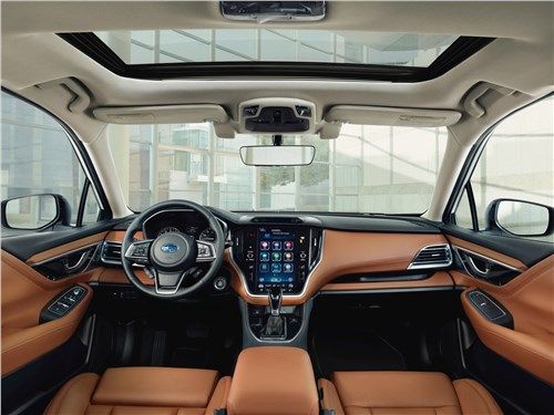 Der Flaggschiff-Pkw Subaru Legacy hat eine reiche Geschichte, wird seit 1989 produziert und hat viele Veränderungen durchlaufen. Die letzte tatsächliche Generation im Moment ist bereits die siebte in Folge. Es debütierte Anfang Februar 2019 auf den Laufstegen der Chicago International Auto Show 2019. Der Tradition folgend hat die Neuheit eine modernisierte Plattform, eine Reihe effizienterer Antriebsstränge, eine erweiterte Liste von Optionen sowie ein moderneres Design erhalten. Die Corporate Identity des japanischen Herstellers heißt "Dynamic X Solid". Es wird nicht schwierig sein, die neue Generation von der vorherigen zu unterscheiden. Es hat schmalere Scheinwerfer mit einer ziemlich außergewöhnlichen Form und orangefarbene Abschnitte der Fahrtrichtungsanzeiger an den Seiten. Der Kühlergrill hat seine massive Chromkante verloren und ist ebenfalls leicht kleiner geworden. Es ist erwähnenswert, die neu gezeichneten Stoßstangen und andere Bremslichter. Trotz des dramatischen Unterschieds in technischer Hinsicht ist die Kontinuität der Generationen visuell deutlich zu beobachten. Das Auto hat seine Familienmerkmale beibehalten. Subaru Legacy ist eine viertürige Mittelklasse-Limousine. Die Gesamtabmessungen sind: Länge 4840 mm, Breite 1840 mm, Höhe 1500 mm und Radstand 2750 mm. Das Auto basiert auf einer neuen modularen Basis namens "Subaru Global Platform". Sie behielt das klassische Layout dieses Herstellers mit einem in Längsrichtung angeordneten Motor und einer völlig unabhängigen Federung bei. Das Chassis besteht aus McPherson-Streben an der Vorderachse und Doppelquerlenkern an der Rückseite. Der Kofferraum ist, wie es sich für diese Klasse gehört, recht geräumig. Das dreivolumige Gehäuse bietet in seiner Standardposition Platz für bis zu 428 Liter Freiraum. Darüber hinaus können die Rückenlehnen des hinteren Sofas umgeklappt werden, um Zugang zum Salon zu erhalten. In dieser Position wird zwar kein flacher Boden gebildet, es können jedoch lange Lasten transportiert werden. Der Subaru Legacy der siebten Generation erhielt zwei neue Antriebsstränge. Der erste ist der klassische 2,5-Liter-Benzin-Boxer mit Saugmotor. Im Vergleich zur vorherigen Modifikation ist es etwas leistungsfähiger geworden. Dank des fortschrittlichen Ventilsteuerungssystems gelang es den Ingenieuren, 185 PS und 239 Nm Drehmoment herauszuholen. Ältere Versionen erhalten einen 2,4-Liter-Turbobenziner vier. Sie entwickelt 264 Pferde und 376 Nm Drehmoment. Als Getriebe wird ein exklusiver Markenvariator mit acht virtuellen Gängen und einem Allradantrieb angeboten. Infolgedessen beschleunigen atmosphärische Versionen in 8,4 Sekunden auf die ersten hundert und verbrauchen im kombinierten Zyklus etwa 7,7 Liter Benzin pro hundert Kilometer. Mit einem Turbomotor erreicht die Limousine in 6,1 Sekunden 100 km / h und verbraucht im gleichen Fahrmodus etwa 8,6 Liter. Wie jedes moderne Auto dieser Klasse verfügt auch der Subaru Legacy auch in der Grundkonfiguration über alle erforderlichen Optionen. Standardmäßig ist das Auto mit einem fortschrittlichen Multimedia-System mit einem 7-Zoll-Touchscreen, einer Klimaregelung mit mehreren Betriebszonen, einem Multifunktionslenkrad und einer Vielzahl von Assistenten ausgestattet, die beim Fahren helfen. Aus einer breiten Liste lohnt es sich, das Spurverfolgungssystem und die Radar-Geschwindigkeitsregelung hervorzuheben. Beide Systeme bilden eine Art Autopilot und können den Löwenanteil der Steuerungsaufgaben übernehmen.